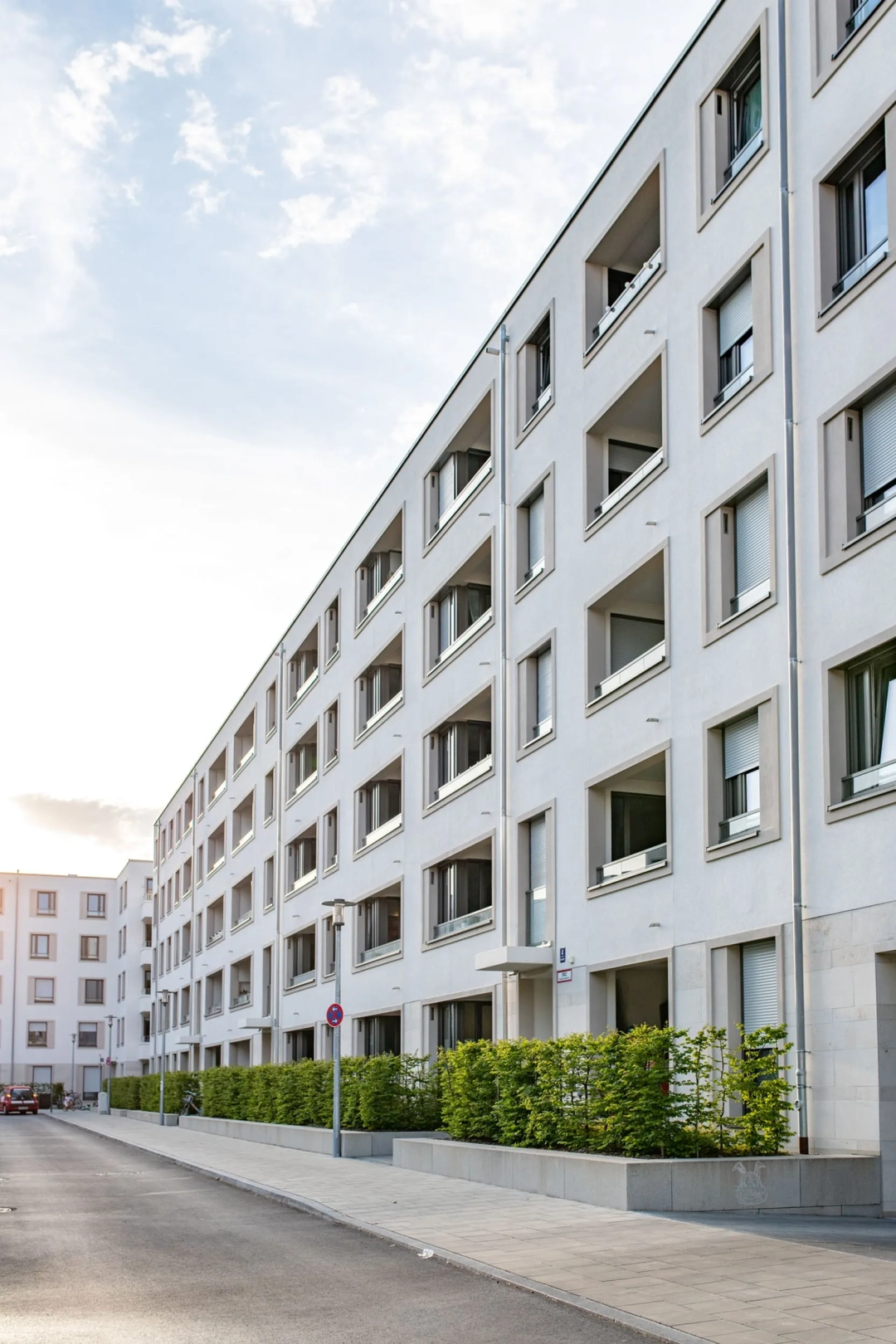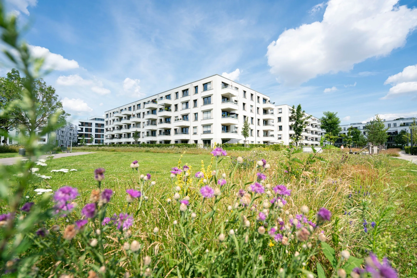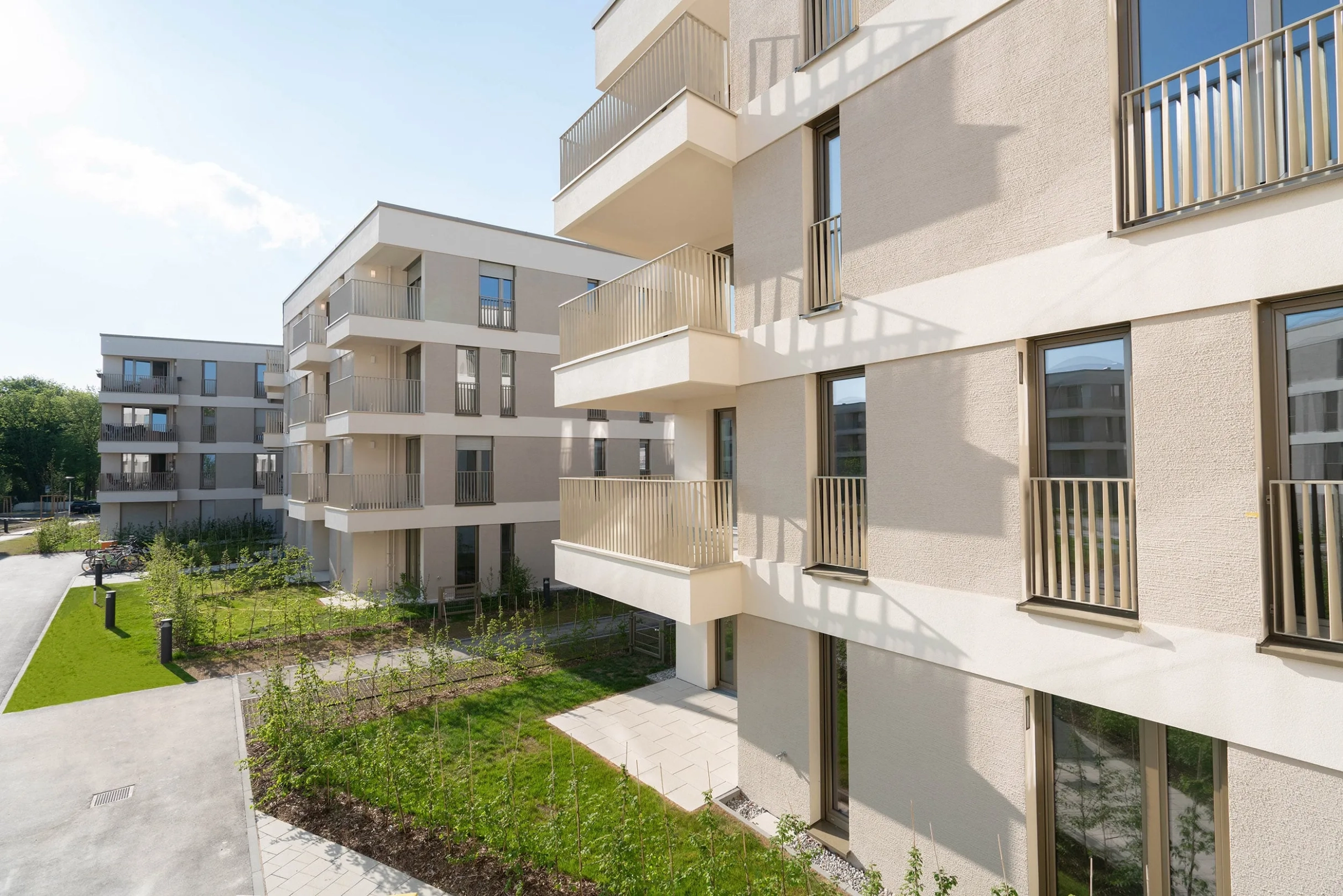 Entspanntes Wohnen im Herzen von München: Die Architektursprache dieses Neubaus verbindet klassische und zeitgenössische Elemente zu einem urbanen, eleganten Fassadenkonzept. Die grünen Freiflächen, rund um die Gebäude, sind besonders großzügig angelegt und verwöhnen die Anwohner mit einem geradezu idyllischen Wohnumfeld.