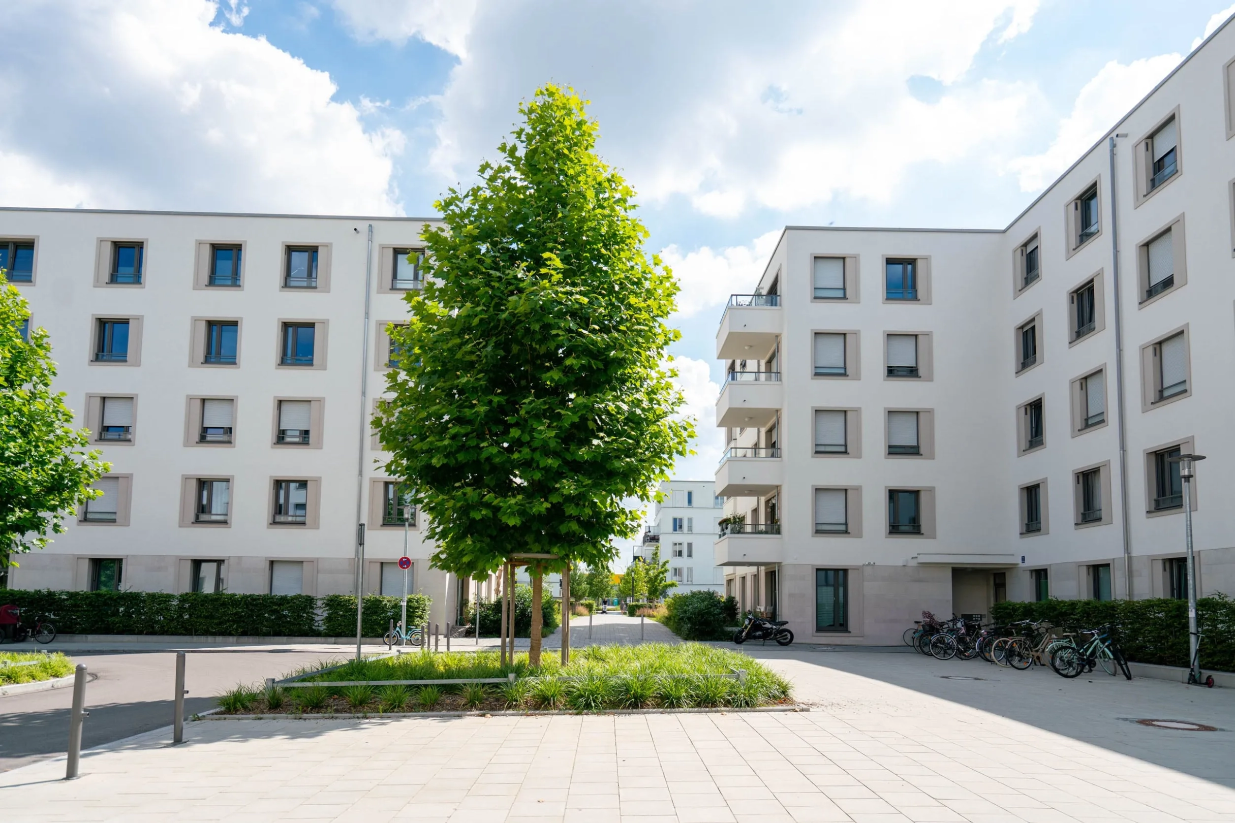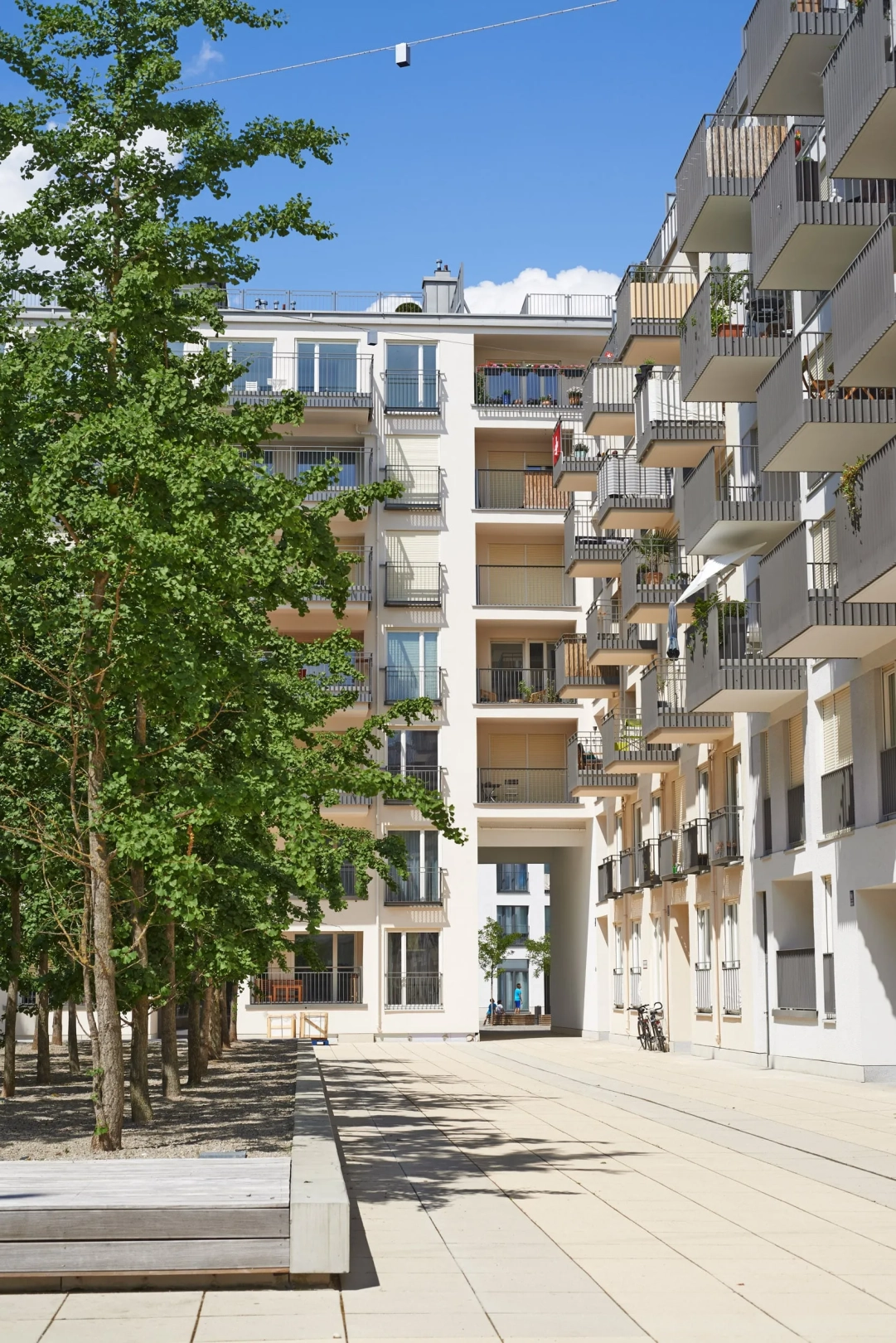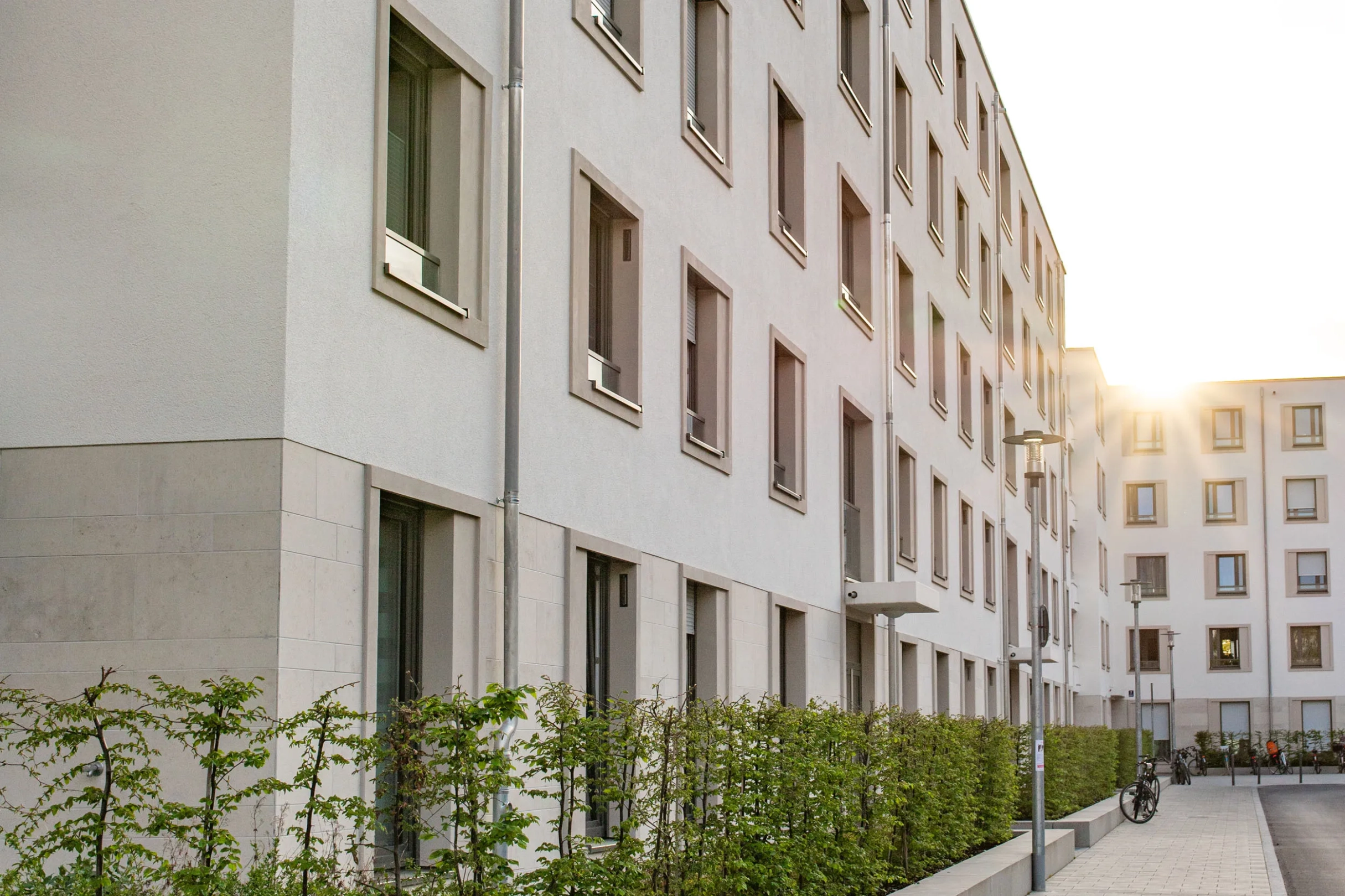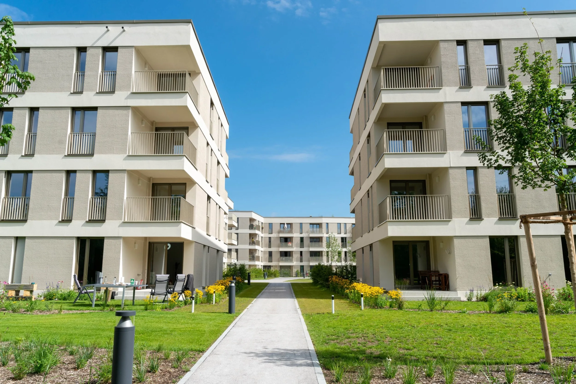 Entspanntes Wohnen im Herzen von München: Die Architektursprache dieses Neubaus verbindet klassische und zeitgenössische Elemente zu einem urbanen, eleganten Fassadenkonzept. Die grünen Freiflächen, rund um die Gebäude, sind besonders großzügig angelegt und verwöhnen die Anwohner mit einem geradezu idyllischen Wohnumfeld.