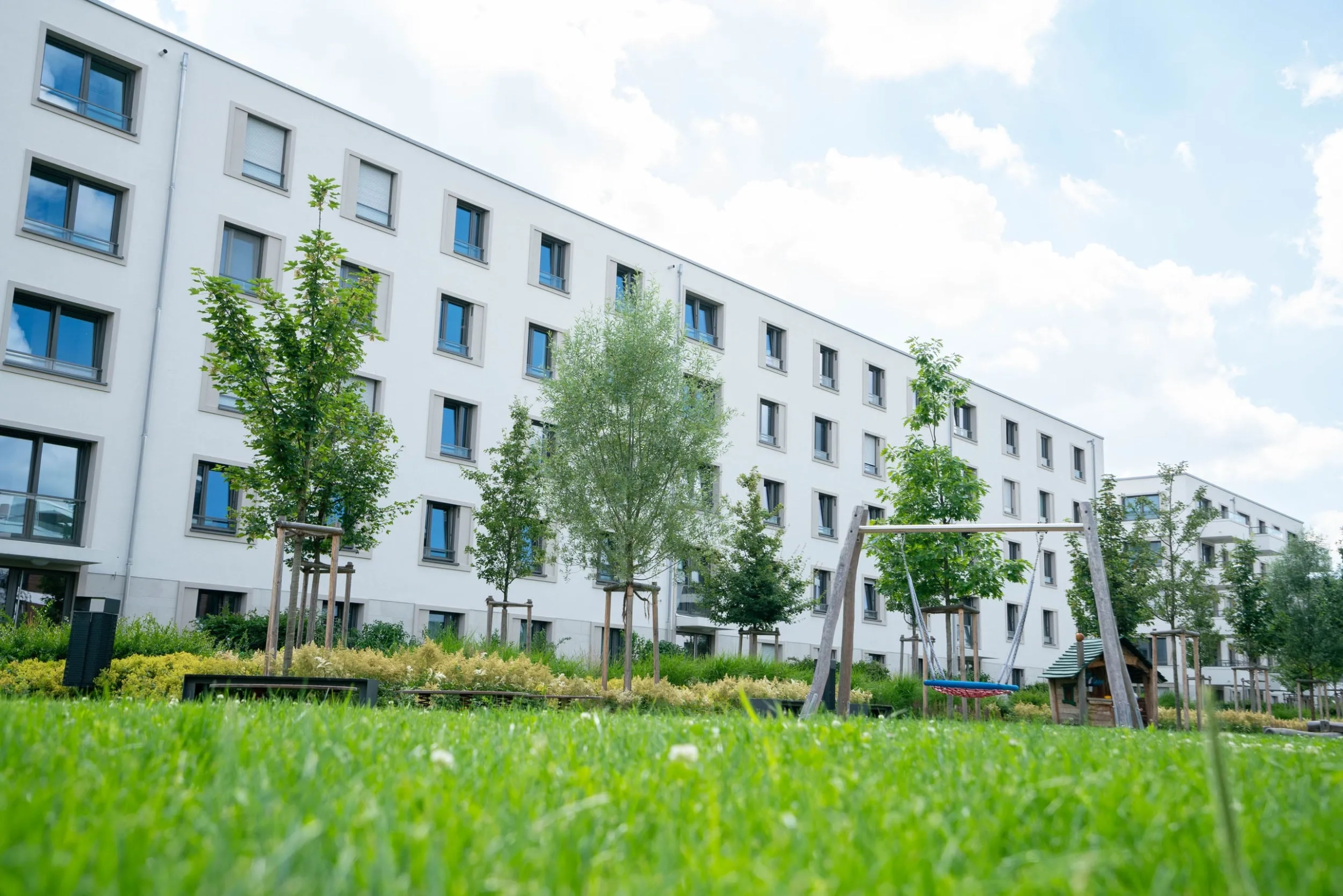Malerische Wohnlage mitten im Grünen: Der Aubinger Winkel überzeugt mit einer lebendig-grünen Freiflächengestaltung, die sich wie ein Park durch die großzügige Anlage zieht. So wurde eine einzigartiges Umfeld geschaffen, das den Bewohnern viel Freiraum und ein naturverbundenes Wohnambiente schenkt.