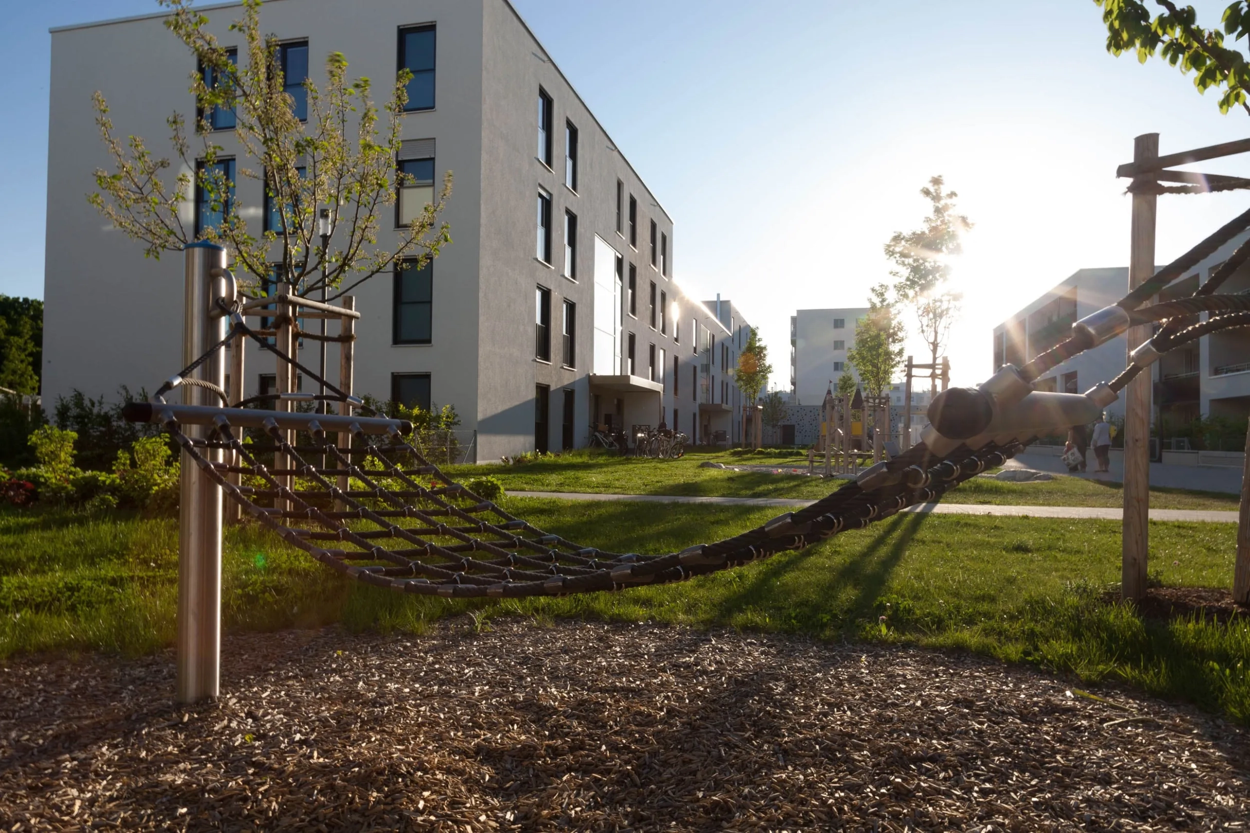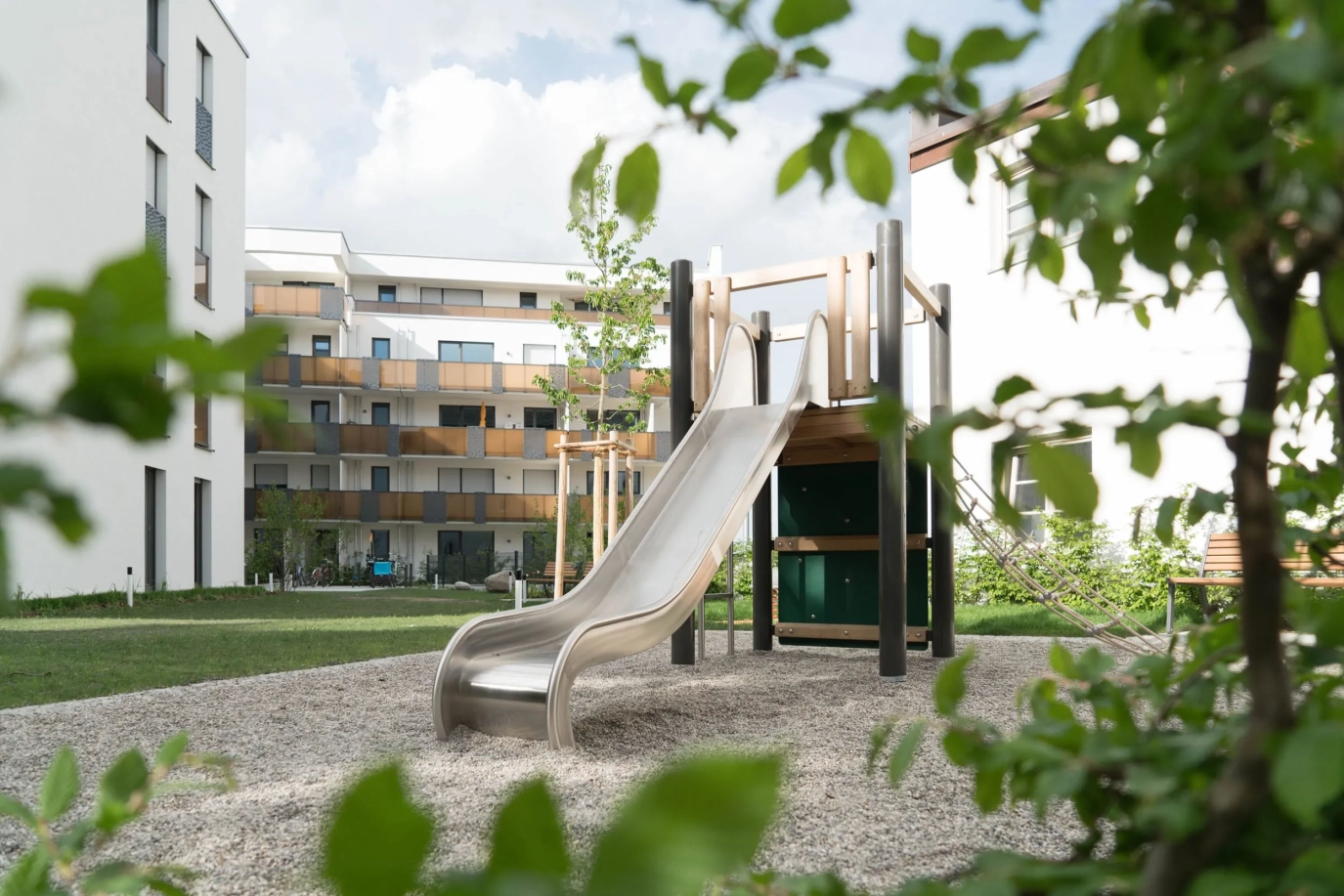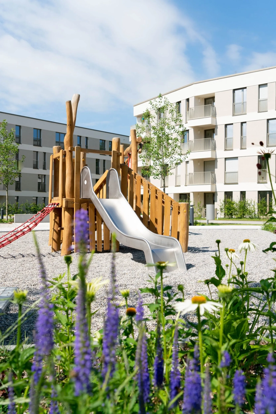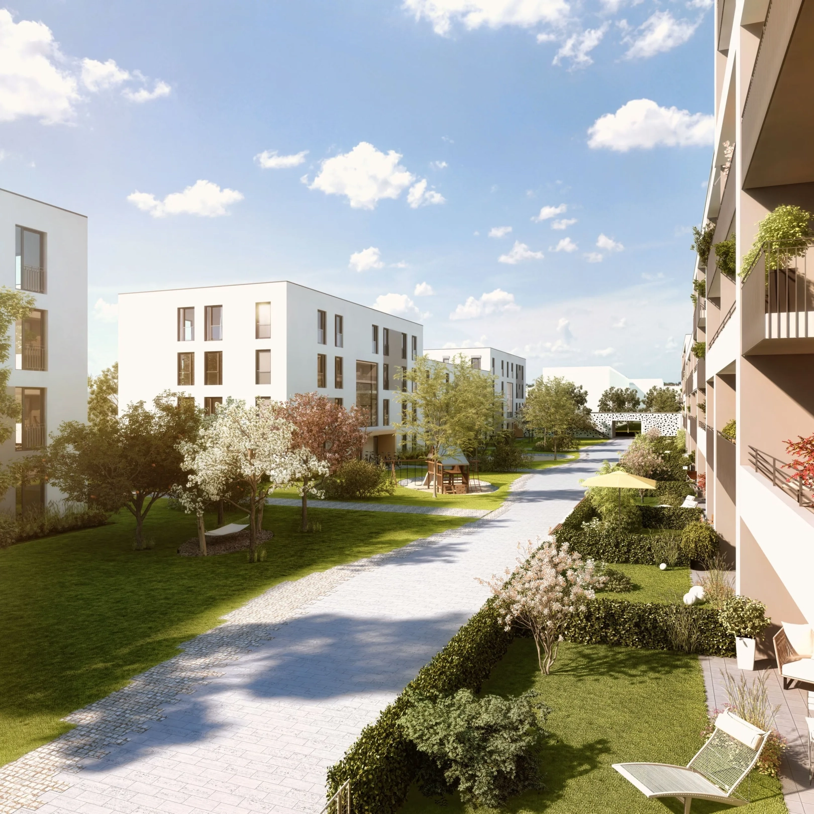 Ruhig gelegen und nachhaltig konzipiert, macht Gartenstadt Home seinem Namen alle Ehre. Vom Durchgangsverkehr verschont, erstreckt sich zwischen den Gebäuden eine besonders einfallsreiche Freiflächengestaltung inklusive eines groß angelegten Parks mitten im Quartier.