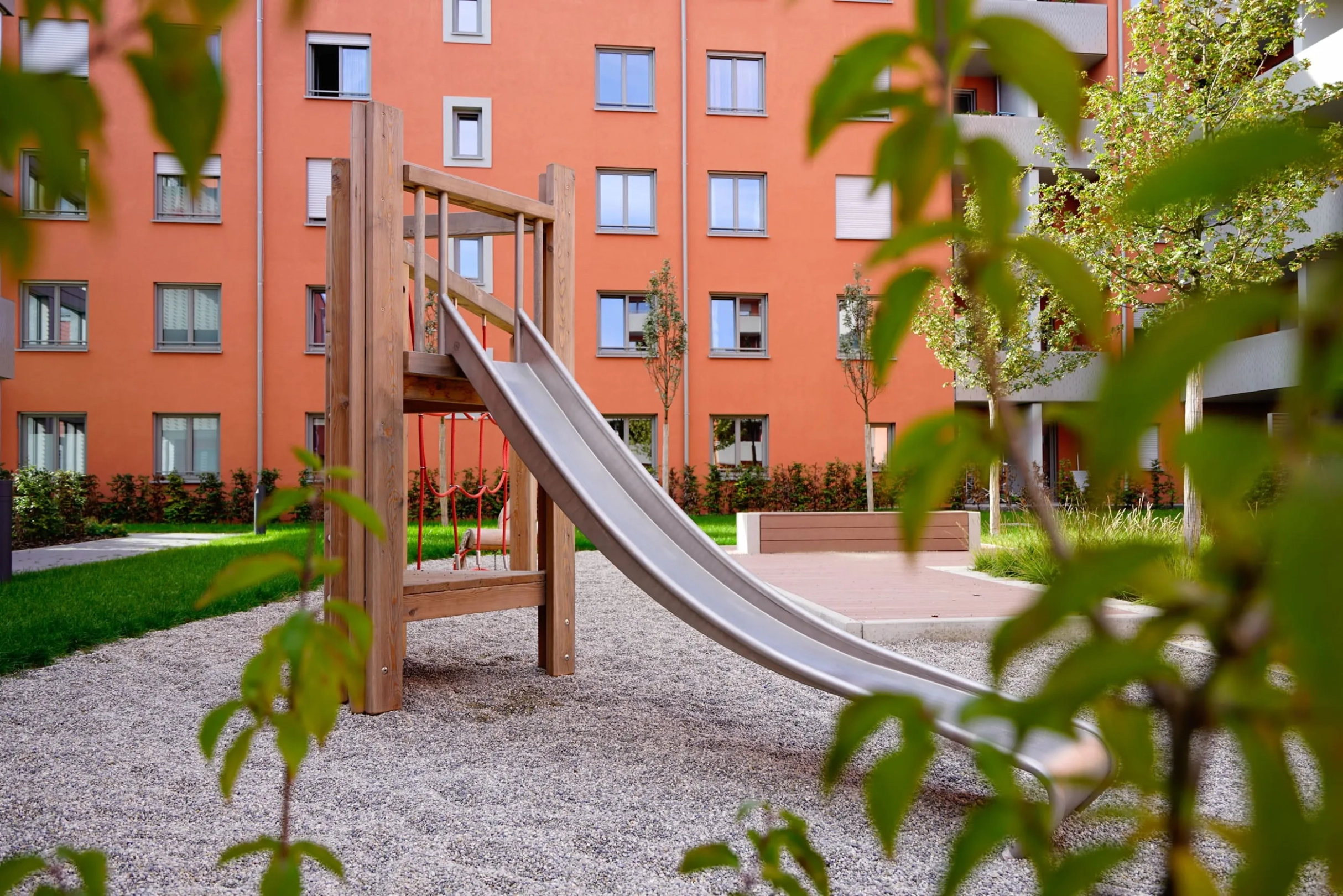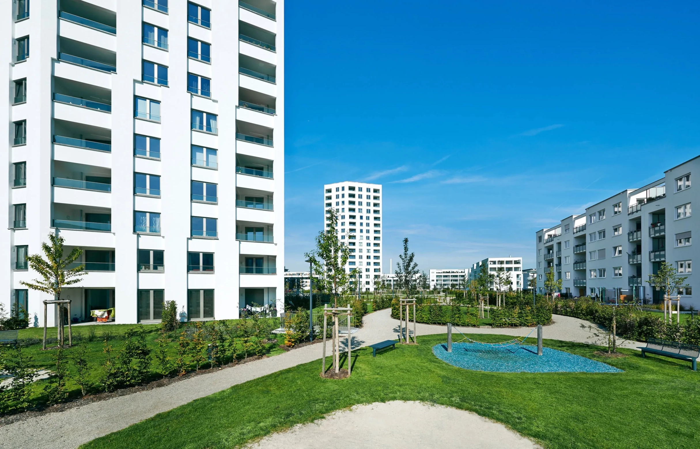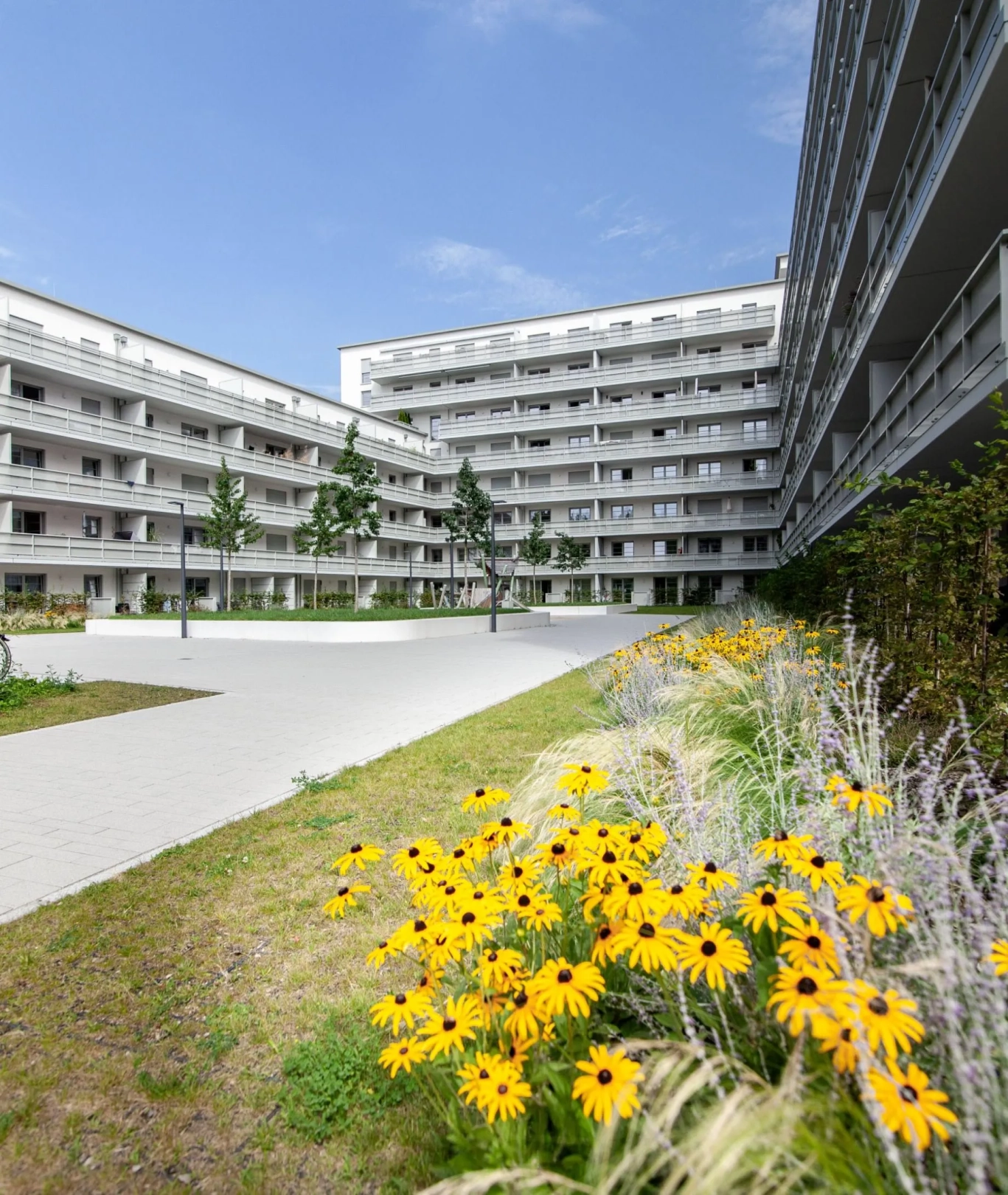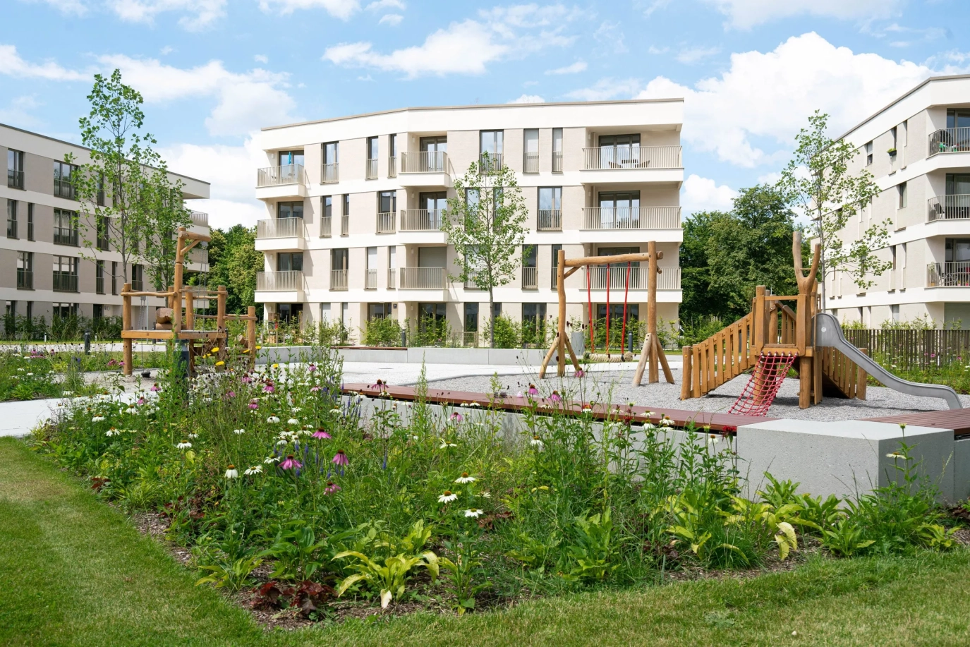 Ruhig gelegen und nachhaltig konzipiert, macht Gartenstadt Home seinem Namen alle Ehre. Vom Durchgangsverkehr verschont, erstreckt sich zwischen den Gebäuden eine besonders einfallsreiche Freiflächengestaltung inklusive eines groß angelegten Parks mitten im Quartier.