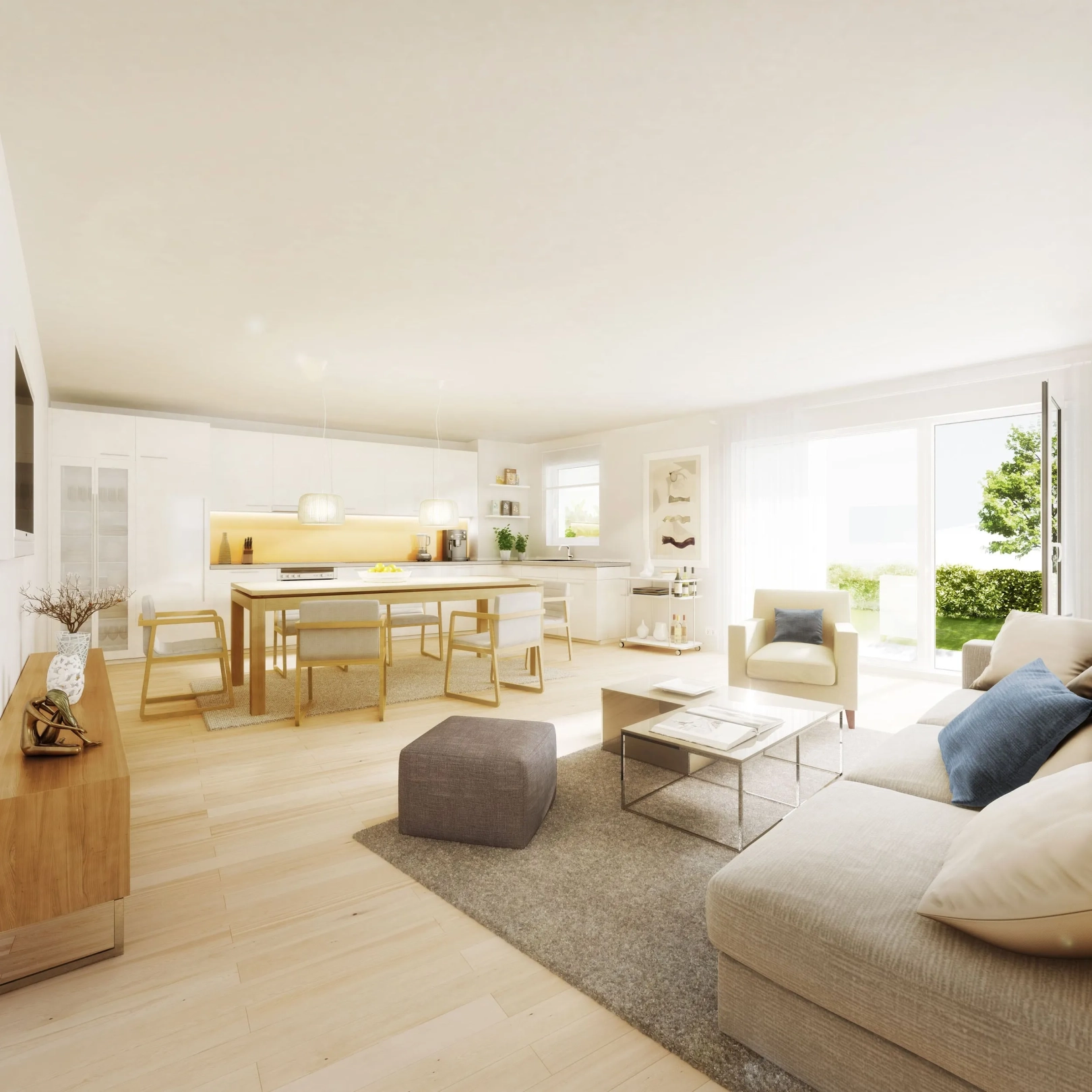 Die Wohnungen bieten viel Sonne, stilvolle Ausstattungselemente und eine sonnig-freundliche Wohnatmosphäre. Einfach zum Wohlfühlen.