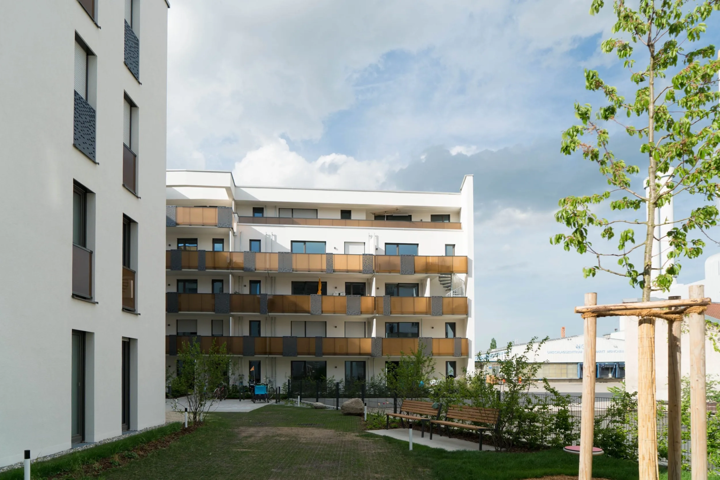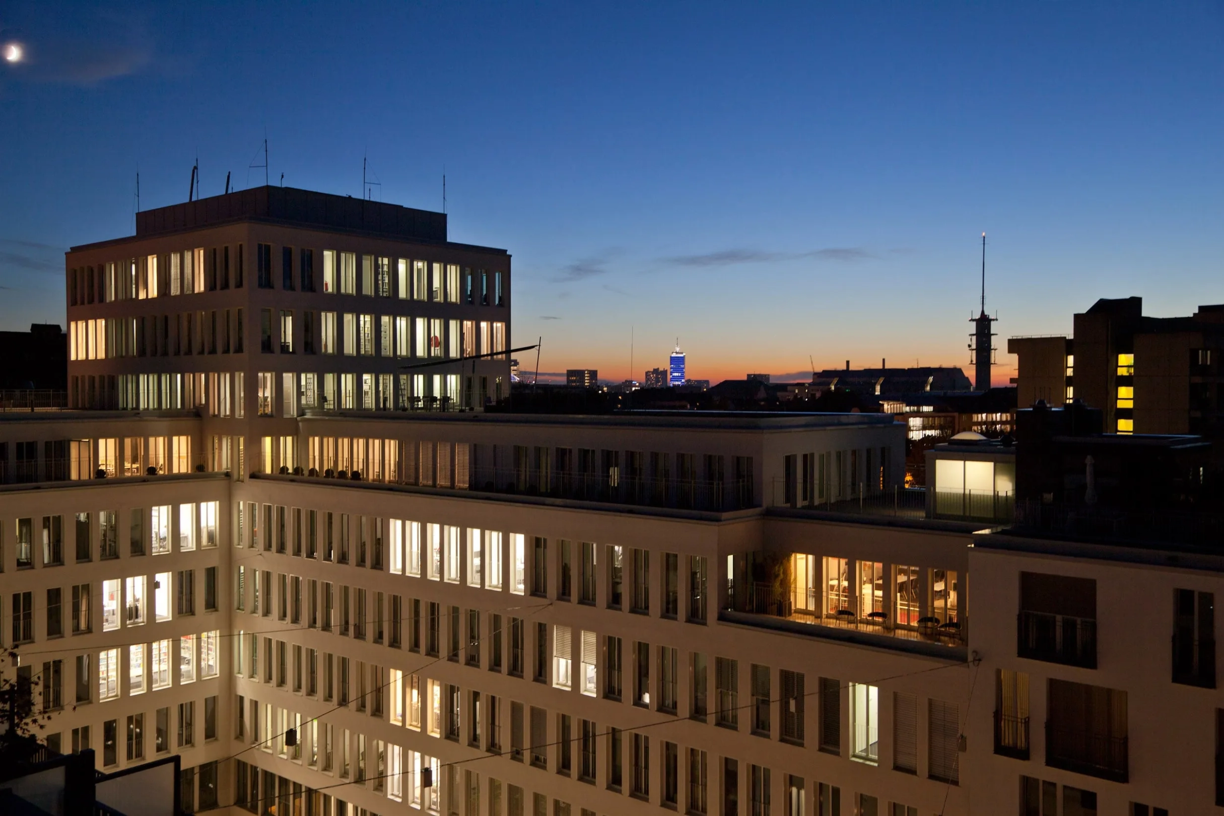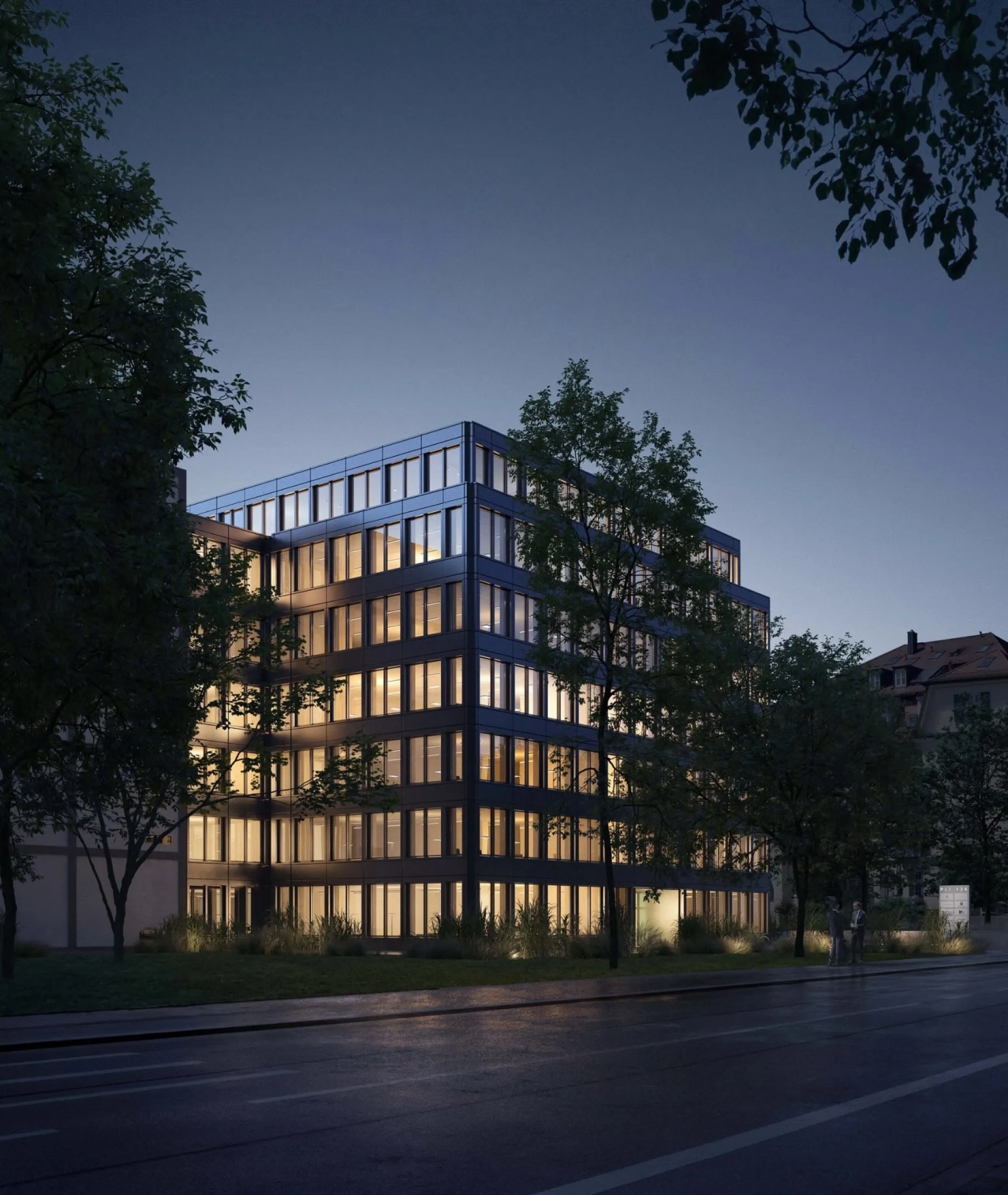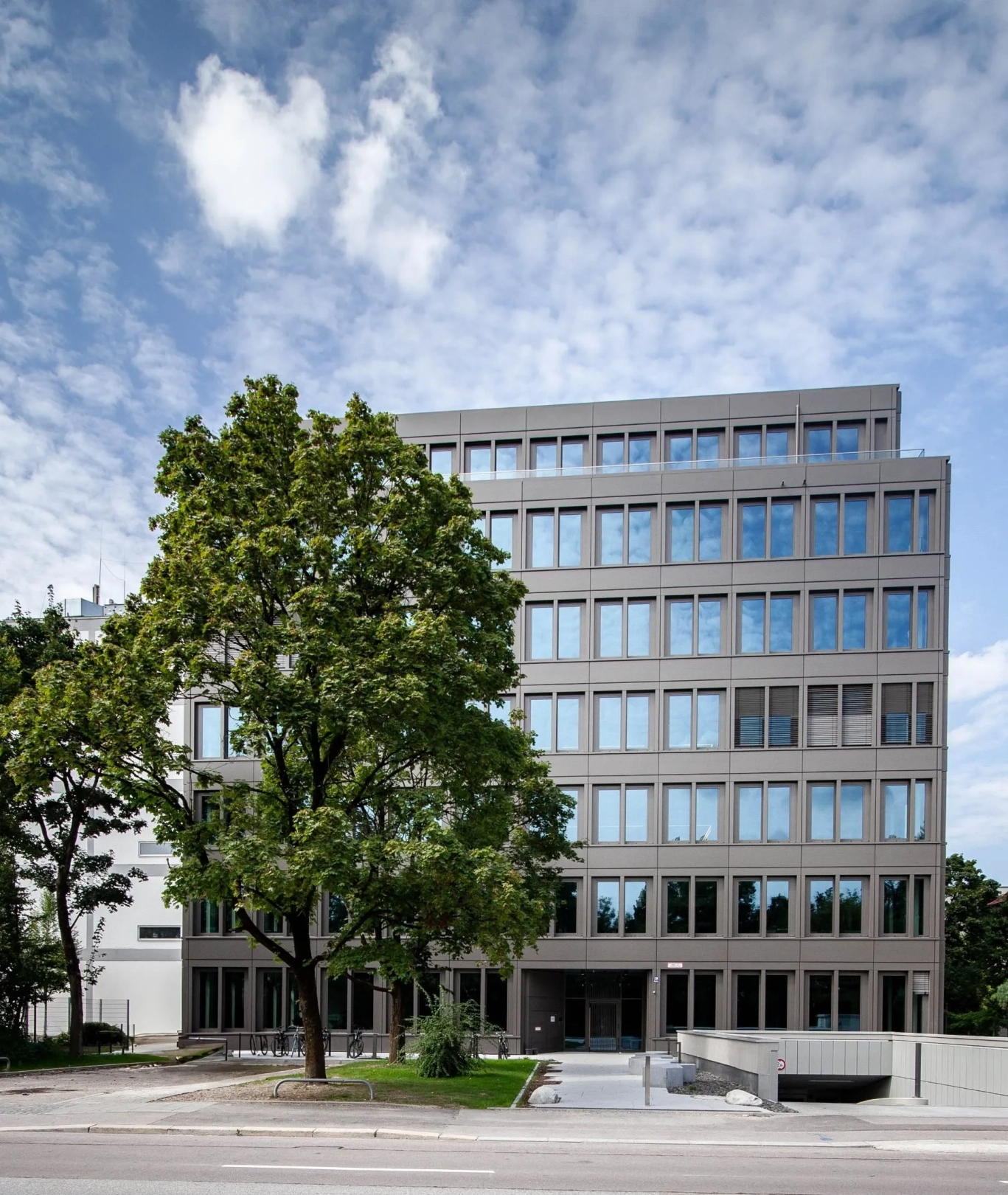 Von der Tiefgarage bis zum Dachgeschoss ist das Gebäude vollständig barrierefrei zugänglich und unterstützt ein hindernisfreies Arbeiten auf allen Ebenen. Das Joint-Venture Projekt von Terrafinanz Wohnbau und Baywobau startete im Frühjahr 2020 und es wurde besonderer Wert auf eine nachhaltige Bauweise gelegt, die technische, ökologische und wirtschaftliche Anforderungen vereint.