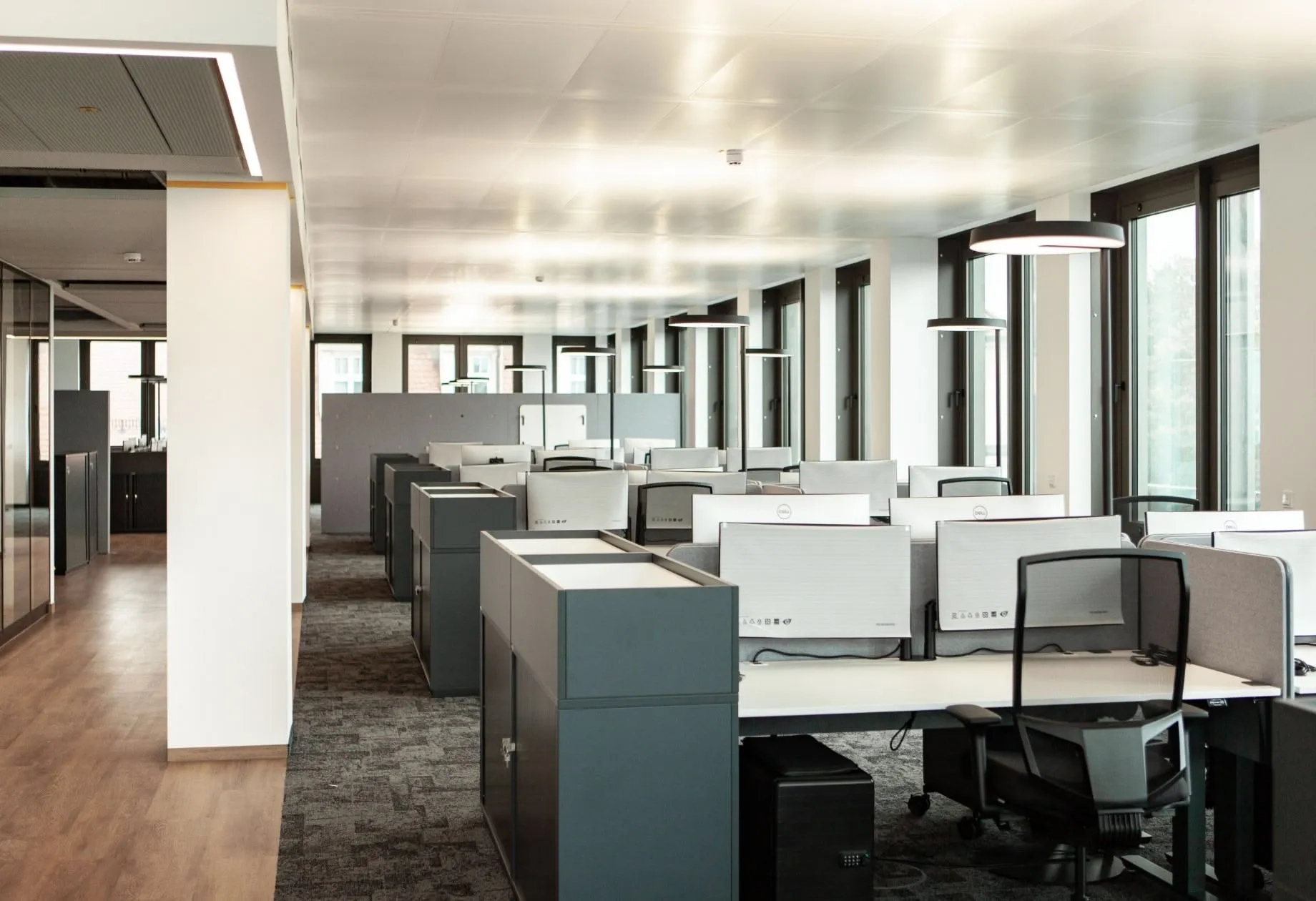 Modernes Arbeiten beim Mieter Agile Robots trifft auf nachhaltige Bauweise: das Bürogebäude an der Plinganser Straße in München, das exklusiv an das High-Tech Unternehmen Agile Robots vermietet wurde, vereint auf 9.200 Quadratmetern durchdachte Architektur mit einem fortschrittlichen Klimakonzept. Das sechsstöckige Bürogebäude setzt mit ökologischen Heiz-Kühl-Decken, Bodentanks für flexible Medientechnik und stabilen WLAN-Access Points neue Maßstäbe in der modernen Arbeitswelt. Auch die Tiefgarage wurde zukunftsorientiert geplant und bietet Ladestationen für E-Bikes und Elektroautos - ein klares Zeichen für Mobilität von morgen.