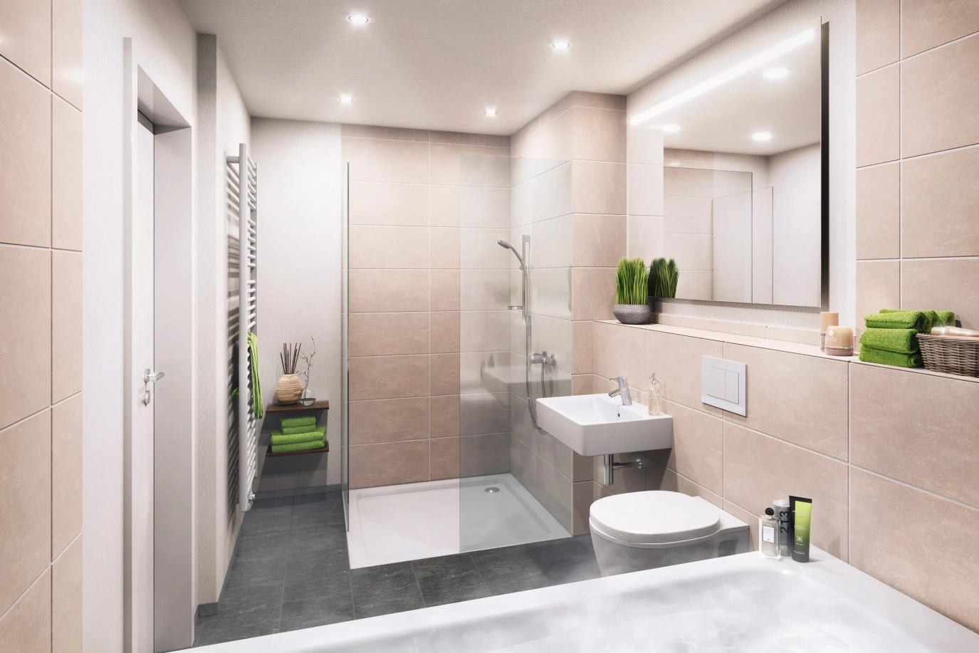 Auch in der Vielfältigkeit der Grundrisse haben die Projektplaner höchstes Niveau bewiesen. So entstanden zeitlos schöne Wohnungen, die ganz auf die individuellen Lebensgewohnheiten ihrer Bewohner eingehen. Ob die praktischen Speisekammer in der Küche, die schönen Ankleide im Schlafzimmer oder das eleganten Tageslichtbad mit bodengleicher Dusche – dieser Wohnraum besticht durch modernen Wohnkomfort.