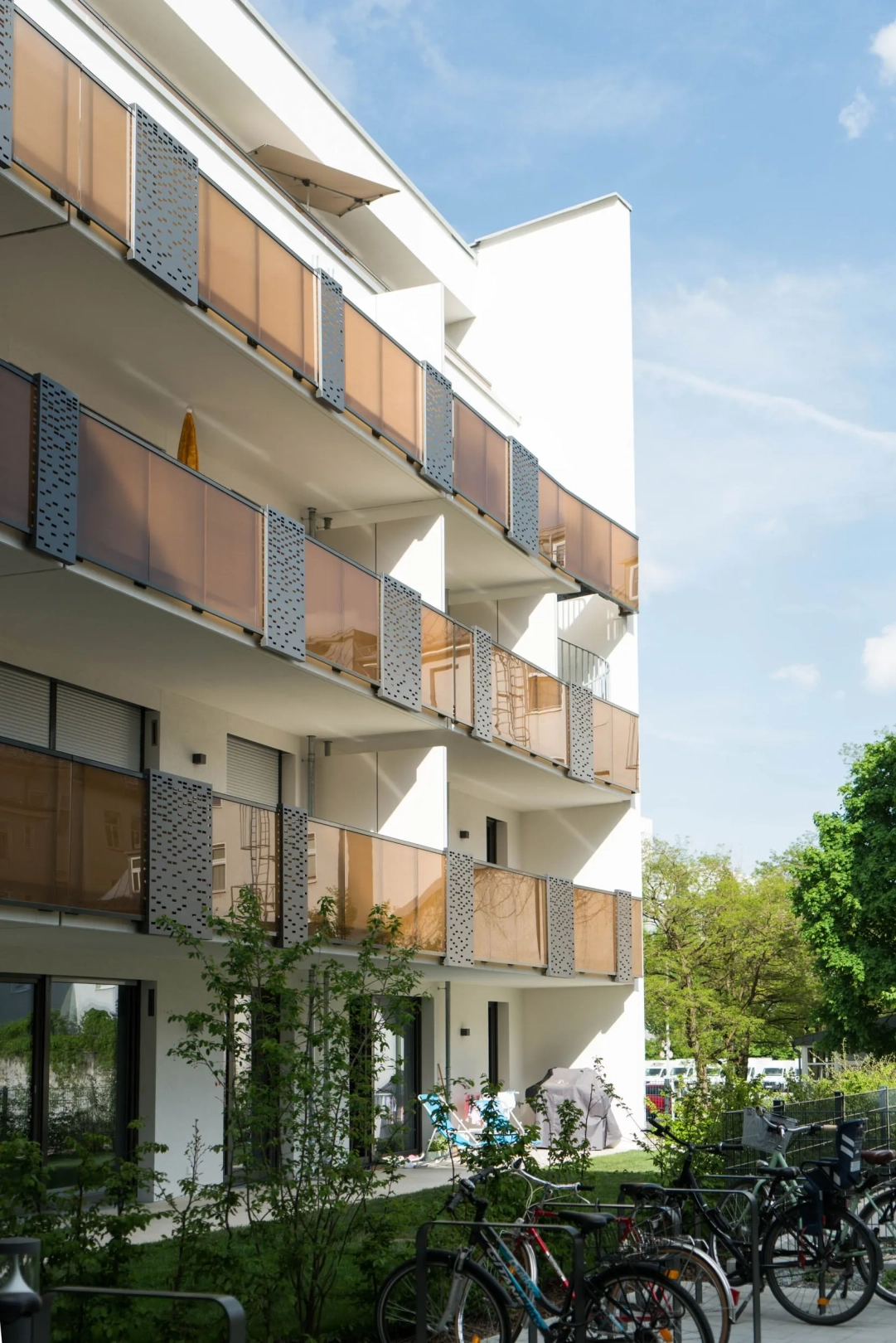 Das Neubauprojekt Südlage, am Forstenrieder Park, besticht mit einer besonders entspannten und familienfreundlichen Wohnkultur. So wurden die zehn Wohnhäuser fernab der Hauptstraße inmitten grüner Wiesen und Bäume eingebettet. Die Gebäudeeinheiten sind nur fünf bis sechs Stockwerke hoch und bieten durch ihre moderne, helle Fassade einen offenen, freundlichen Anblick. Die stilvollen Balkonbrüstungen und bodentiefen Fenster schenken dem Ensemble eine lebendige Urbanität und kommunizieren vollkommen mit der blühenden Freiflächengestaltung der Wohnanlage. So konnte eine Wohnatmosphäre entstehen, die natürlich Akzente setzt und die Privatsphäre komplett unterstützt.